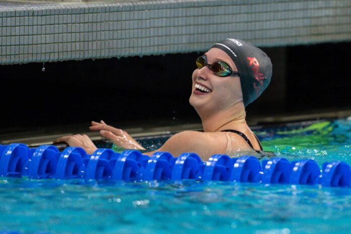 That same relay that Jones kickstarted ended up setting a pool record of their own. In addition to Jones, Jada Scott (1:00.72), Gaby Van Brunt (50.86), and Cadence Vincent (46.80) combined in 3:29.67, the time comfortably took down the 2023 mark from the Texas 400 medley relay in 3:32.85.