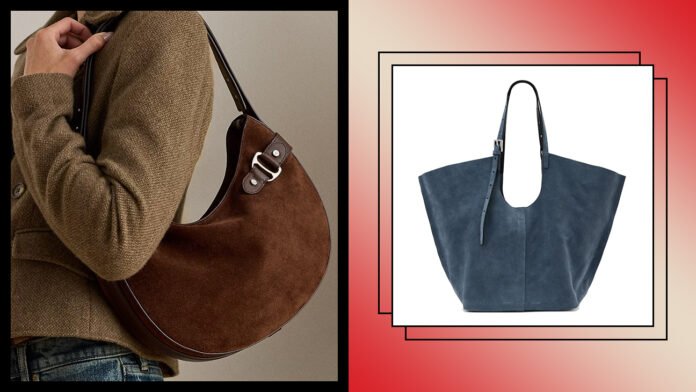The Khai Hobo mixes suede and leather in a relaxed, sculptural shape. Shoulder straps and a center-buckle closure add a modern edge, making it a standout in any fall lineup.