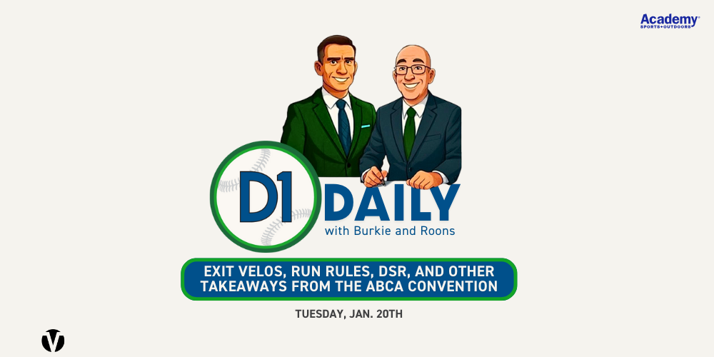 Mike Rooney2026-01-21 07:30:002026-01-20 16:11:36Exit Velos, Run Rules, DSR and Other Takeaways From The ABCA Convention [D1 Daily]