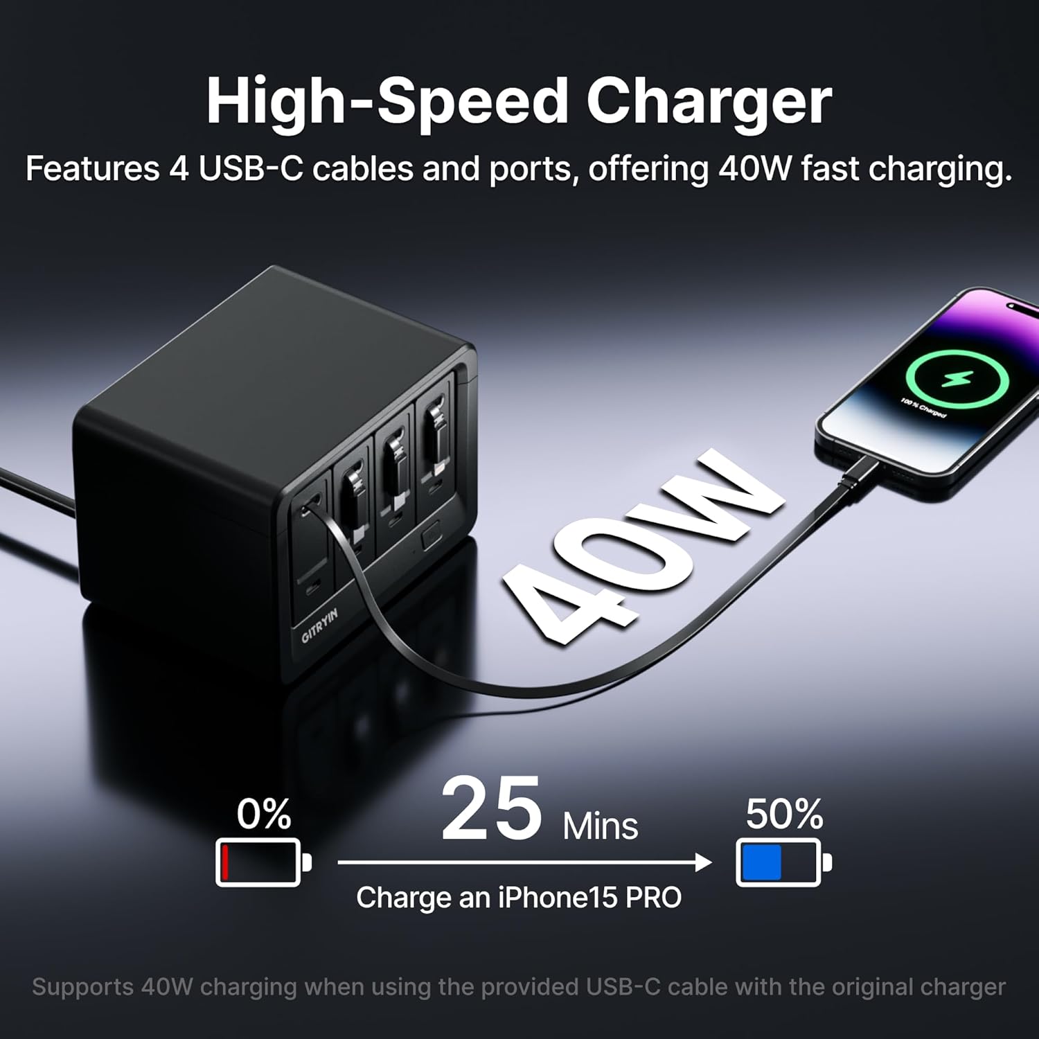 All-in-One Charging Solution: Revolutionize your workspace with 4 retractable 40W wall chargers in one sleek hub. Power laptops, phones, tablets, smartwatches, and more simultaneously—eliminate outlet shortages and tangled cables while maximizing charging efficiency.