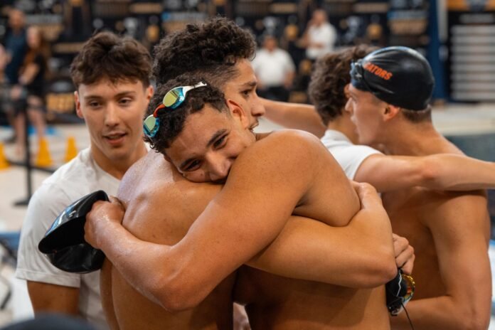 The Tunisian Tandem from Gainesville put on a show for NCAA fans tonight. Ahmed Hafnaoui and Ahmed Jaouadi touched 1-2 in the 500 free, making a distance sweep for Florida at this meet and netting Hafnaoui his first NCAA title. After the race, they both expressed their delight with how they’ve executed this week and getting to train with one another again after many years apart.